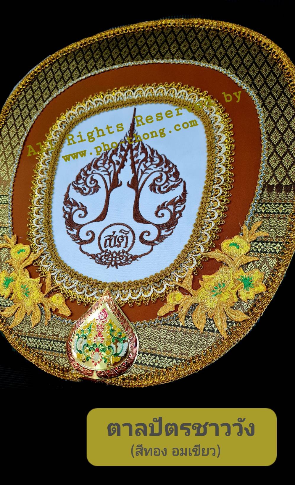 ลักษณะพิเศษ: งานปักดิ้นทอง ฉลุลายไทย ปราณีต อักขระสีทอง สวยสะดุดตา